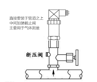1.壓力變送器直接安裝于管道之上,中間加裝截止閥,主要用于氣體測量。