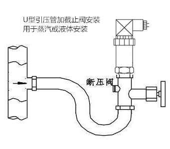 2.壓力變送器用U型引壓管加截止閥安裝,用于蒸汽或液體安裝。